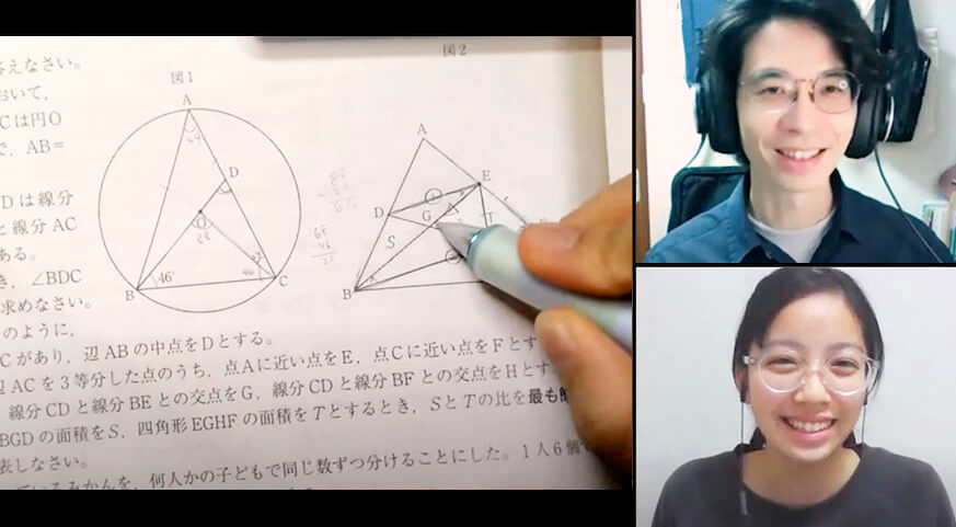 オンライン指導は移動時間が要らないから、生徒さんの遅れにも対応しやすいですよね。天候に左右されないのもいいところです。塾と違って1人のお子さんの良いところを引き出せるし苦しんでいるところも見てあげられる。オンラインだと対面よりもはるかにきめ細やかに生徒の様子が見られます。