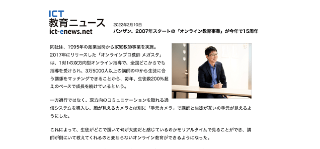NHKからメガスタのオンラインプロ教師が注目の教育サービスとして取材を受けました
