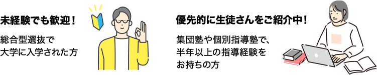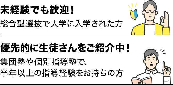 半年以上の指導経験がある方、総合型、学校推薦型選抜型入試で合格された方を希望される生徒さんが多数!