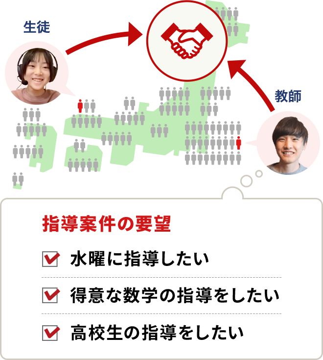 ですので、あなたに合う生徒さんを選べます。相性への配慮であなたの指導をサポートします。