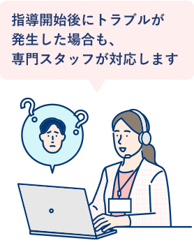 指導開始後にトラブルが発生した場合にも、専門スタッフがご家庭との間に入って対応いたします。