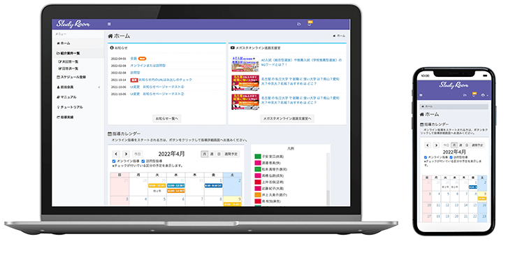 指導も、指導報告もメガスタ独自のオンライン指導システム「スタディールーム」から行えるので、すべてオンライン上で完結できます。