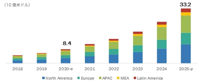 ※出典:株式会社グローバルインフォメーション「デジタル教育の世界市場:エンドユーザー(個人学習者・学術機関、企業・政府機関)、学習タイプ(自習型・インストラクター主導型オンライン教育)、コースタイプ、および地域 2025年までの予測」