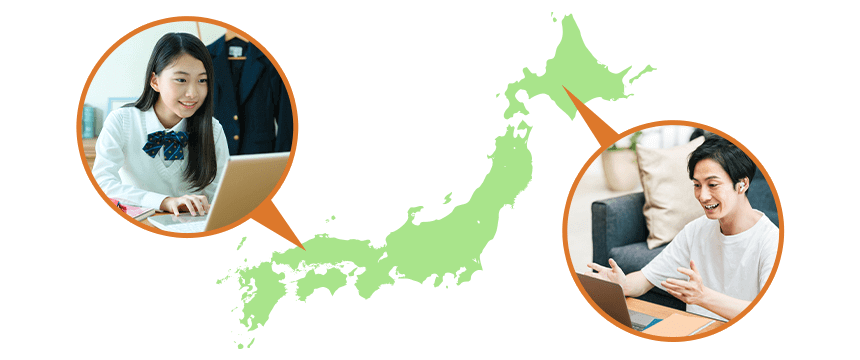 2017年から開始したオンライン指導サービスでは圧倒的な実績があるとともに、東は北海道の端から西は沖縄の離島まで、日本中に小学生から高校生・浪人生まで幅広い生徒さんがいます。